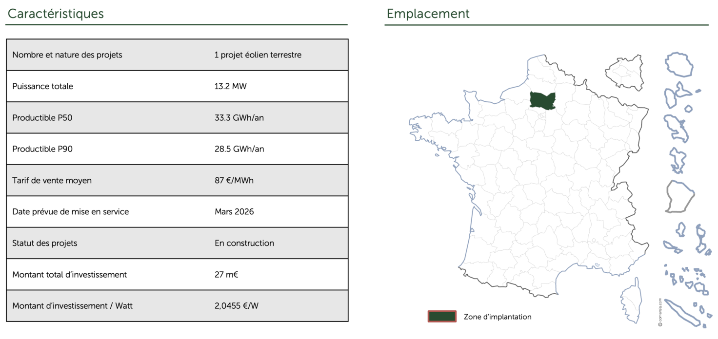 Innergex accompagne Eolfi depuis janvier 2025 dans le déroulement de ce projet avec l’acquisition de la majorité des parts de la société de projet “Parc éolien Oise 2”.